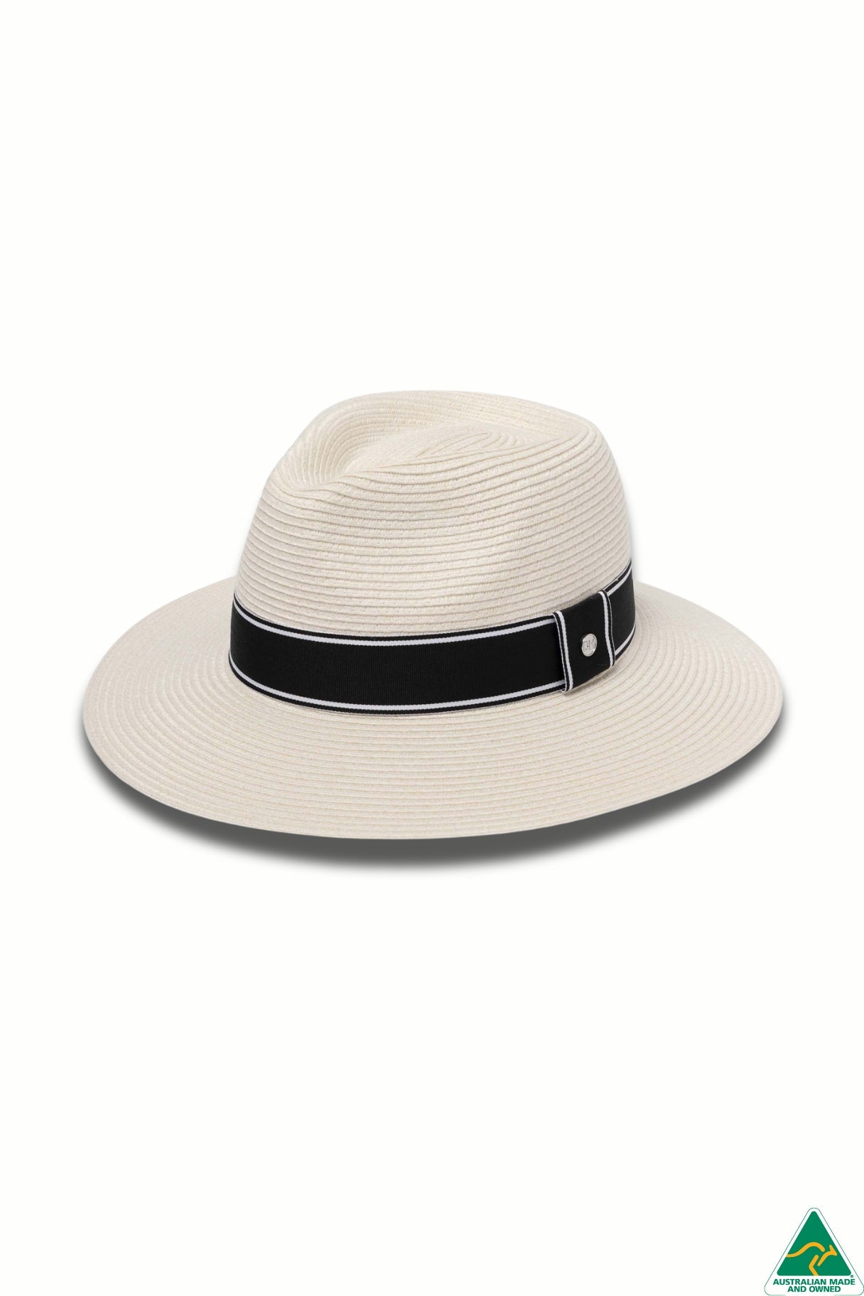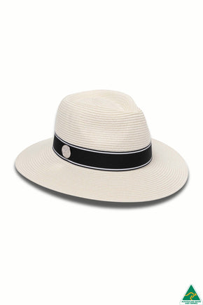 A classic, yet striking golf fedora made from our exclusive water resistant, wind resistant and travel friendly Flexibraid®. Ivory with a bold black and white ribbon trim and complete with a signature DH stud. A magnetised DH ball marker on the side, is a clever and practical feature. UPF50+ sun protection, lightweight and breathable.