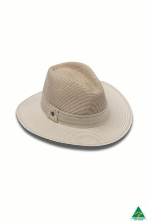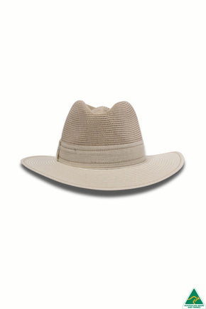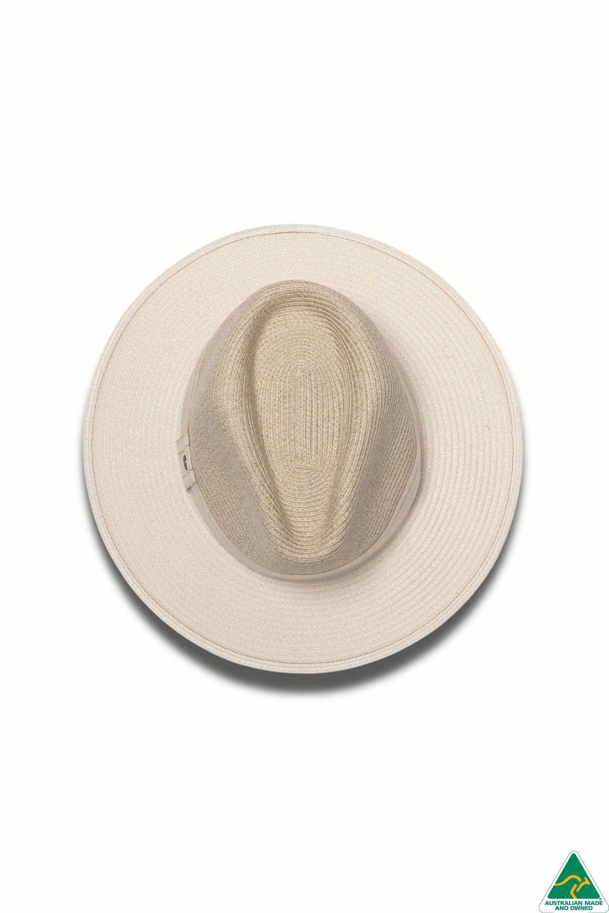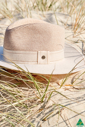 The Peta Fedora is a hat to love – delicate, stylish, and wonderfully handmade in Australia. We have paired its natural brim and ivory crown with a 4cm wide linen ribbon. This trim has been custom border-stitched in taupe reflecting the hand-stitched edge of the brim. The Peta provides a 7cm brim, 9.5cm crown & UPF 50+ maximum sun protection as well as the ultimate in travel-friendly performance.