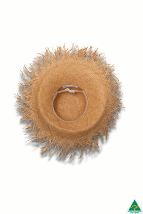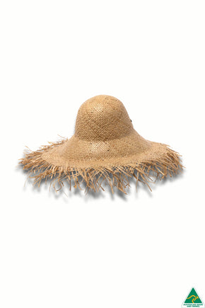 A definite showstopper, the Barbados Capeline made from natural straw has a 13cm frayed-edge brim and is shaped with a soft turn-up in the front. A simple DH stud is attached to the side of the crown and our internal ComfyFit adjustor conforms to your head size for a great fit.