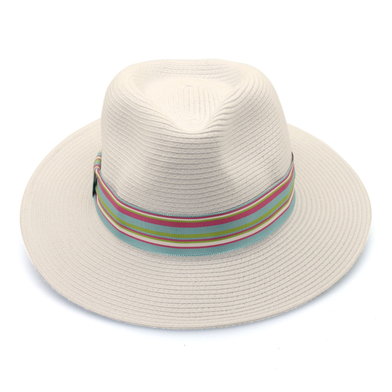 Stand out from the crowd with the ever-so-chic Peregian Fedora. Ivory Flexibraid® with a bold striped band in pinks and blues, this striking hat can be used on the golf course with it’s a built in magnetised golf marker, or take you to an afternoon lunch with the girls with style! UPF50+, internal ComfyFit adjustment & Australian made.