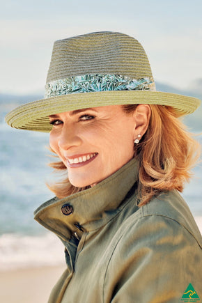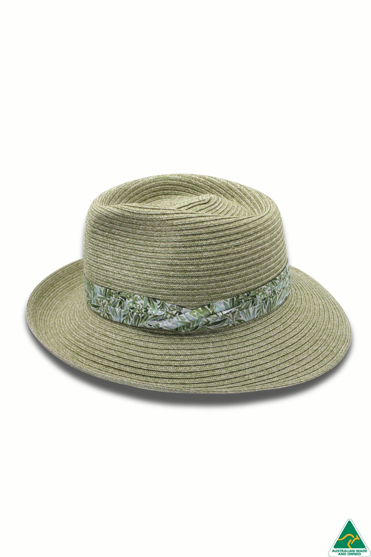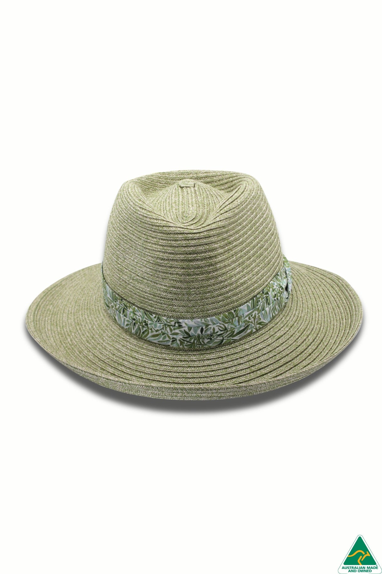 Eden is the most glorious mixed green Flexibraid®, in a reverse trilby style, featuring a stunning Liberty green floral puggaree band. Internal ComfyFit adjustment and made from our exclusive water resistant, crush proof and UPF50+ material. Eden will be a firm favourite to wear, all year long.