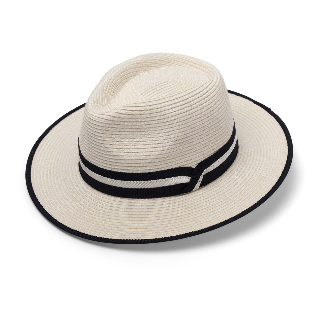 The feature of this understated, Flexibraid® Windsor fedora is the bold Ivory and Navy headband, which is finished on the side of the crown with a French twist. The 8cm brim is bound with a navy ribbon edge. Hand crafted and manufactured in Australia, the Windsor is travel friendly and feature the ComfyFit internal adjustor to ensure a perfect fit and security in the wind.