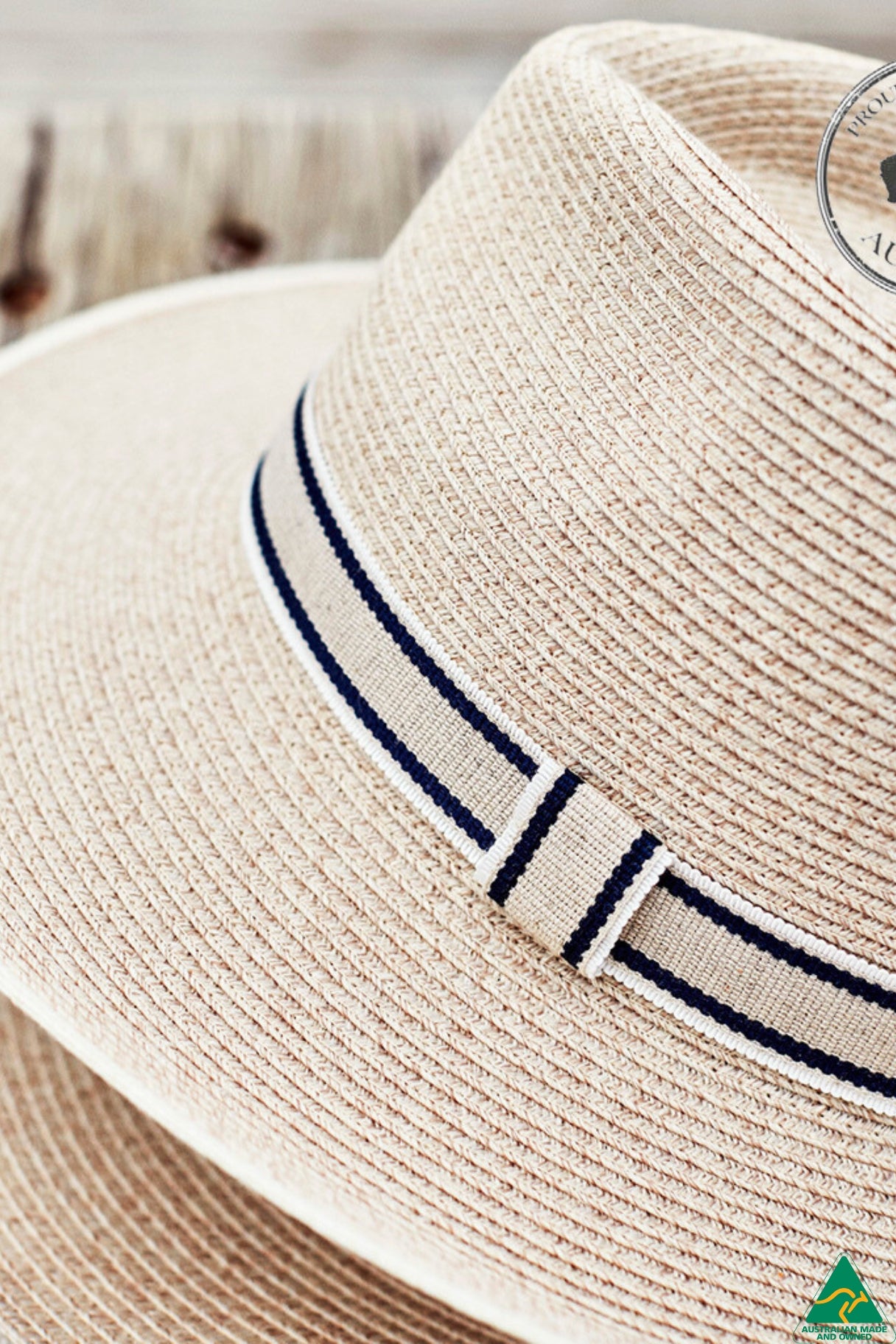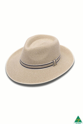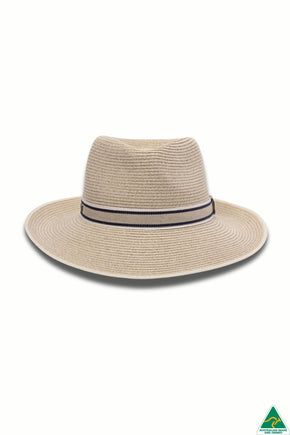 The Malibu brim turns up in the back and supports a stylish navy & natural ribbon around the 9.5cm crown. Internally, the ComfyFit size adjustor will ensure a perfect fit and security in the wind.